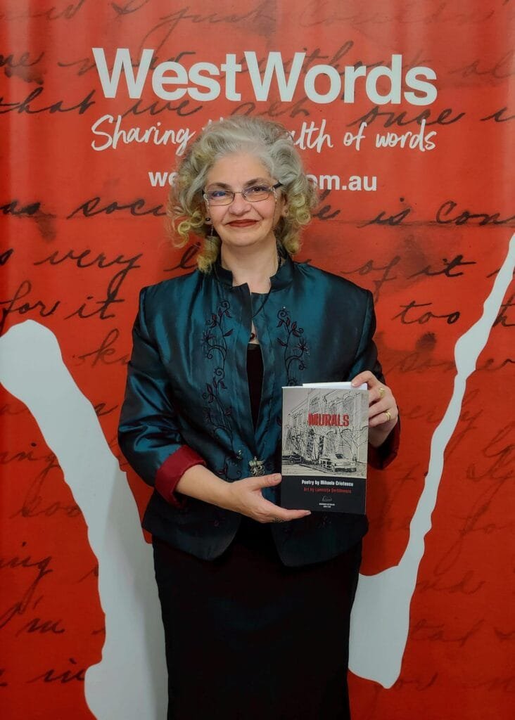 Mihaela Cristescu a vorbit despre prietenia româno-australiană, despre sprijinul oferit de organizațiile culturale australiene WestWords și New Writers Group, despre proiectele literare în derulare și a încântat publicul cu versuri profunde.