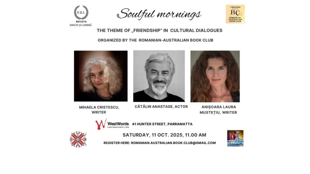 Aducând o atmosferă de cultură și armonie, Centrul WestWords din Sydney, Parramatta, a găzduit în data de 11 octombrie 2025 evenimentul cultural „Dimineți de Suflet”. Organizat de Clubul de Carte Româno-Australian, sub coordonarea Anișoarei Laura Mustețiu și în colaborare cu poeta Mihaela Cristescu, evenimentul a reunit iubitori de literatură într-un cadru inspirațional.